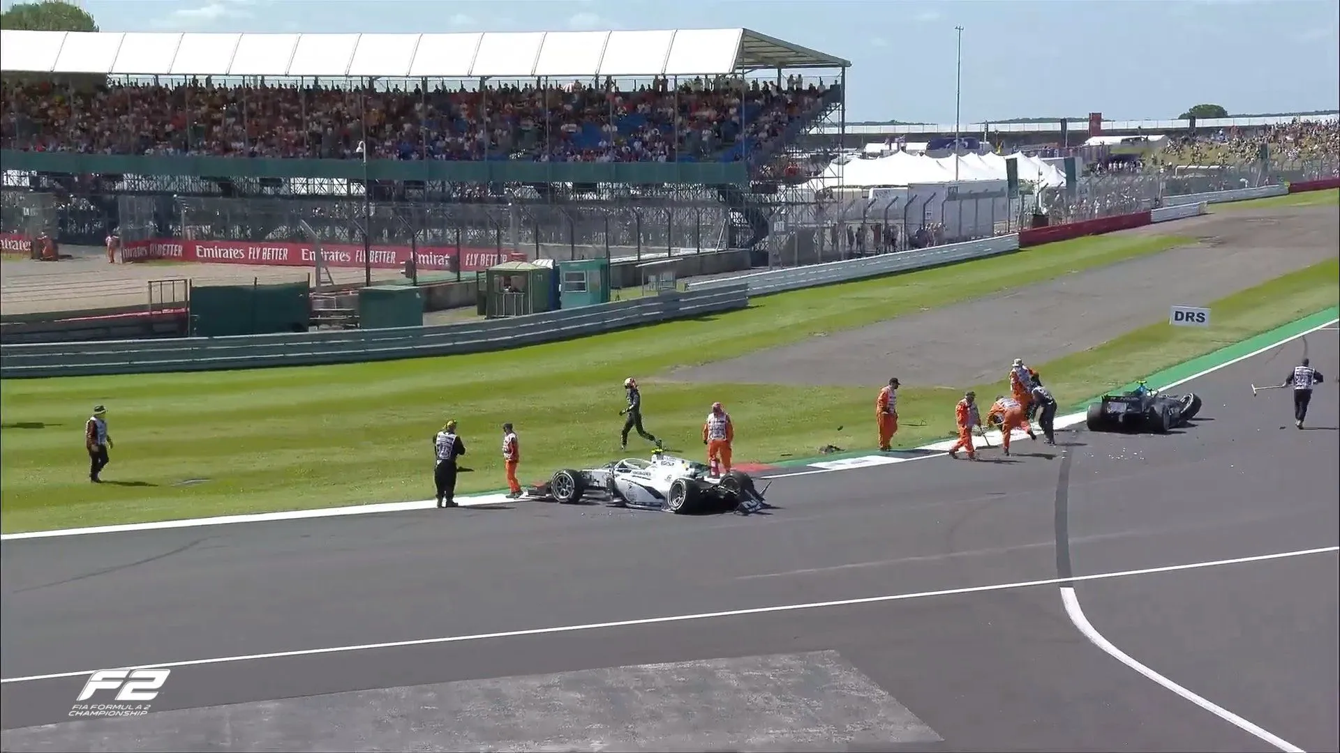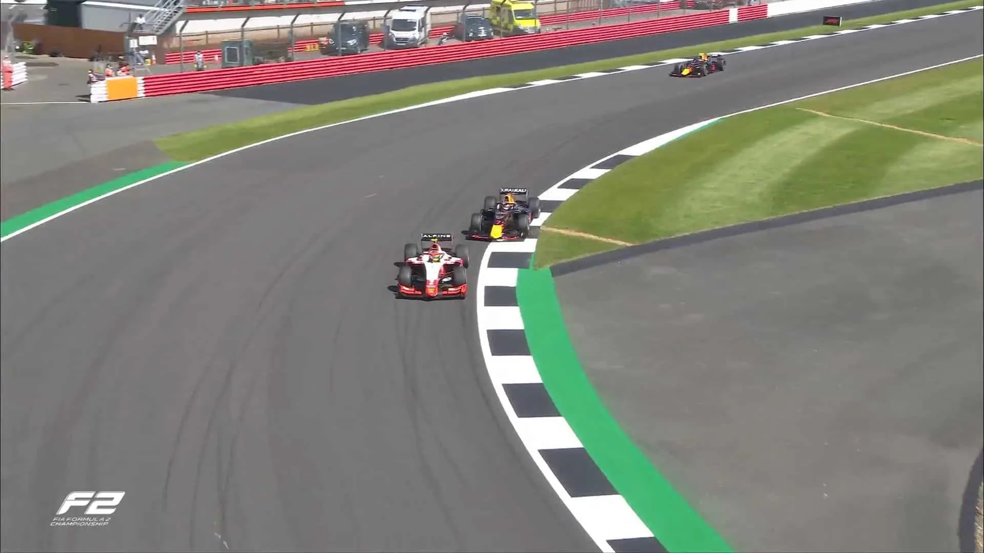 Au restart au onzième tour, la course reprend sous de belles couleurs et Zhou dépasse Aitken pour la douzième place. L’Anglais se fait doubler dans la foulée par Roy Nissany. Puis le temps est long, le ciel est bleu et les dépassements ne courent pas les rues. À cause du dirty air, les pilotes se suivent en peloton sans même pouvoir tenter des manœuvres. Enfin, cela s’applique à tous sauf à Piastri. Le nouveau leader du championnat a longtemps bataillé avec Lawson – comme ce matin – pour la quatrième place. Et après cinq tours dans les rétroviseurs, le sixième aura été le bon, l’Australien passe enfin. En prenant l’extérieur dans Brooklands, le pilote Prema se rapproche du podium.