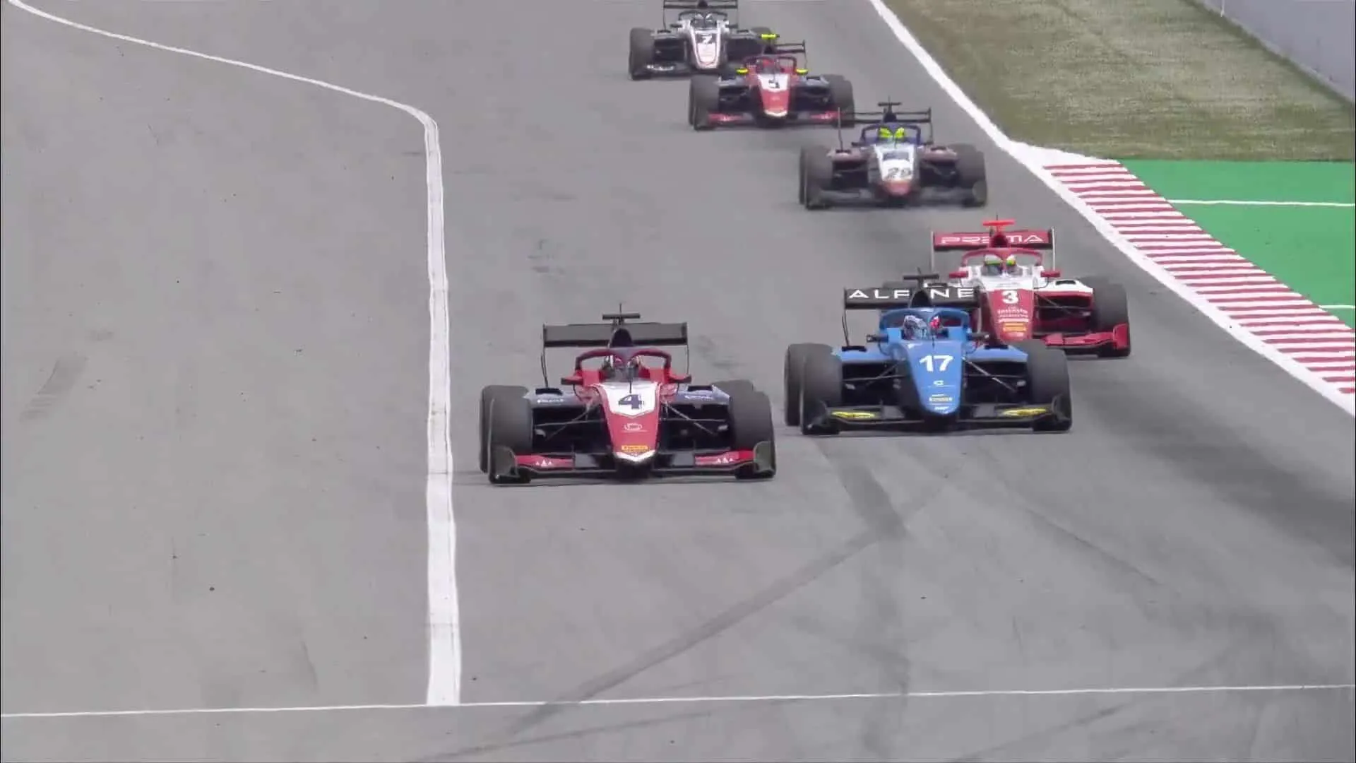 Quelle folie à l’extinction des feux ! Après des envols plus que moyens, Dennis Hauger et Jack Doohan se font rattraper par Victor Martins et Matteo Nannini. Et voilà une entrée à quatre de front dans le virage numéro un. Hauger s’en sort de justesse devant le talent français de l’Alpine Academy. Dans ce premier tour, tous les pilotes se retrouvent à deux de front dans chaque courbe pour le plus grand plaisir des suiveurs. Ce départ sans incident profite surtout au poleman Dennis Hauger qui peut s’échapper seul en tête. Signant immédiatement le meilleur temps, le Norvégien est tout de même sous la pression de Nannini. Contrairement à hier, les rôles s’inversent et aucun des deux hommes ne veut finir dans les graviers. Derrière eux, le Français Victor Martins, troisième, est en difficulté et un bouchon se forme derrière lui.
