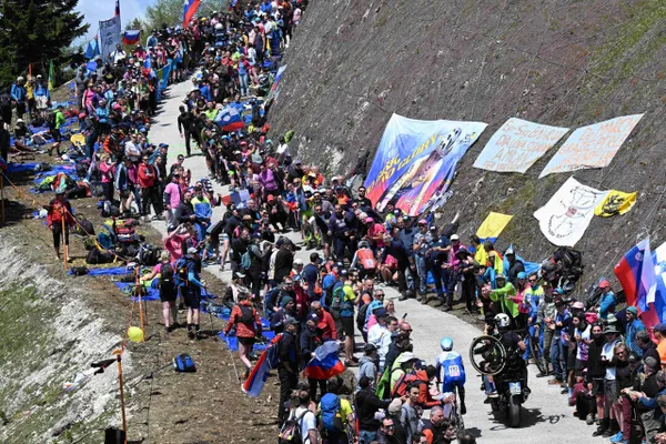 Alors que Roglič descendait la ligne droite d’arrivée pour se rendre à la conférence de presse d’après-course, réaliser le contrôle anti-dopage, les supporters l’ont acclamé, et il les a salués de la main. Il lui a fallu une escorte policière pour entrer dans un bâtiment, et certains fans ont même essayé de défoncer les portes, tant l’enthousiasme et le soutien à leur héros national étaient grands.