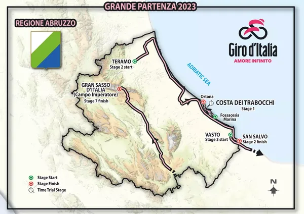 L’étape d’ouverture est un contre-la-montre individuel de 18,4 km entre Fossacesia et Ortona, dans l’arrière-pays de Pescara. Un jour plus tard, les sprinters auront l’occasion de s’exprimer à la fin de la course de 204 km entre Teramo et San Salvo. RCS Sport a également annoncé que le Giro retournera dans la région des Abruzzes lors de la 7ème étape pour une arrivée au sommet au Gran Sasso d’Italia, la première fois que la course grimpe au-dessus de 2 000 mètres.