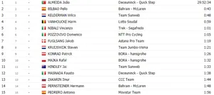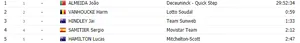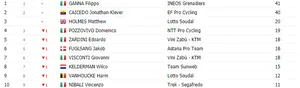 A noter que cinq coureurs manquaient à l’appel ce matin au départ de Giovinazzo. En effet, Tony Gallopin (AG2R), Patrick Gamper (Bora Hansgrohe), Sean Bennett (Education First), Simon Yates et Edoardo Affini (Mitchelton Scott) n’ont pas pris le départ de cette huitième étape.
