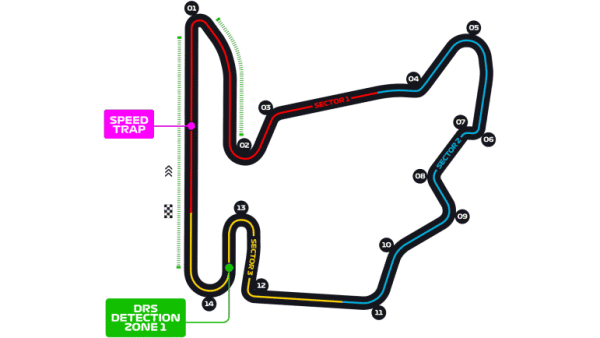 Dans un circuit où l'appui aérodynamique prend le pas sur la performance du moteur, ce premier secteur fait exception. Au terme d'une ligne droite de 800m, les pilotes auront la possibilité d'utiliser leur DRS pour plonger et effectuer des dépassements dans le virage numéro 1. Cette courbe à droite ouvrira la deuxième portion où le DRS est autorisé du circuit, avant d'arriver sur la deuxième courbe, un long virage à gauche où même les monoplaces à l'extérieur auront leur chance en se plaçant au mieux pour la troisième courbe du circuit.