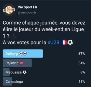 Pour cet épisode du Grande Rougador, Rajkovic, Maouassa, Camavinga et Dolberg étaient nominés. C’est finalement le buteur de Nice qui a été choisi.