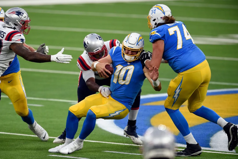 Mais malgré des prestations individuelles très satisfaisantes, Justin Herbert boucle l’exercice 2020 avec sept victoires contre neuf défaites. Un bilan voué à s’améliorer, notamment par des progrès du quarterback. « Aussi bon soit-il, Justin Herbert n’est encore ni un leader, ni un gestionnaire, ni un clutch player pour le moment. Il a eu des occasions d’aller gagner des matches, ce qu’il n’a pas su faire », estime Benjamin Bernard. Des axes de travail qu’a également relevé Emilien. « Il doit encore parfaire ses prises de décisions, il a fait des erreurs. Certaines étaient normales pour un rookie, d’autres étaient bien évitables. » Sa progression pourrait être facilitée par des renforts au sein des Chargers, notamment au poste de running back. En 2020, la franchise de Los Angeles est la 18e de la ligue en termes de yards gagnés au sol (1784). « Ce n’est pas un si mauvais classement, surtout avec la blessure d’Austin Ekeler. Mais on manque tout de même d’un véritable soutien de poids au sol, poursuit le fan des Chargers. Quant à la ligne offensive… C’est le même problème depuis quelques années. À gauche, c’est faible. À droite, les arrivées de Trai Turner et Bryan Bulaga n’ont pas eu l’effet attendu. » Un constat appuyé par les statistiques. Cette saison, Justin Herbert est le quarterback qui a subi le plus de pressions par la défense adverse (177).