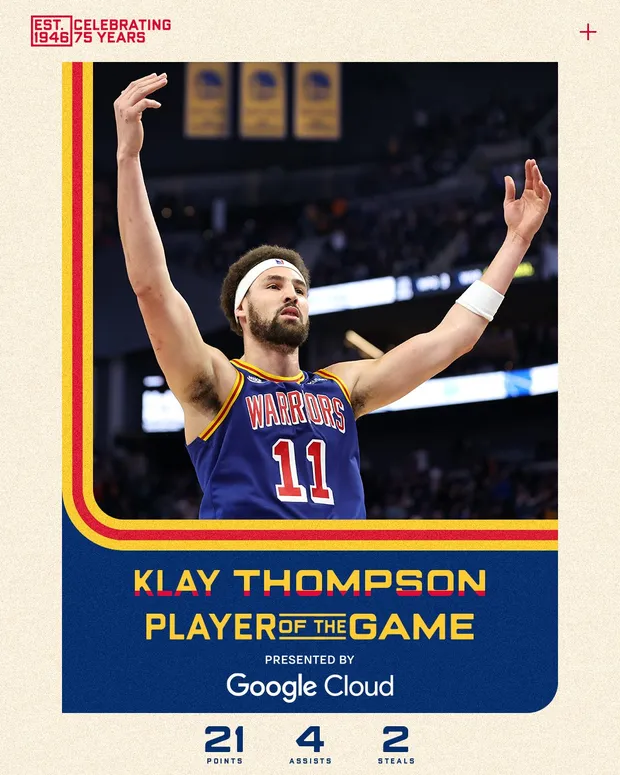 « Ça arrive vite et ils prennent feu rapidement. Quand ils le font, c’est pratiquement impossible à arrêter » affirme Andrew Wiggins, encore très bon cette nuit dans son rôle de « two-way player ». Le match avait pourtant mal démarré pour Thompson après deux échecs sur ses deux premiers tirs. La mise en chauffe effectuée et on a retrouvé le Klay Thompson dominateur que l’on connaissait avec sa longue absence. Un shoot du parking pour se mettre en confiance puis il va dérouler avec son pote Stephen Curry qui a lui aussi retrouvé son adresse pour son retour à la maison. Peu avant la mi-temps, Thompson plante un nouveau 3-points et donne 28 points d’avance à son équipe. À la mi-temps Klay aborde une ligne de statistiques tout à fait honorable avec 17 points à 5 sur 9 aux tirs dont 3 sur 5 à 3-points.