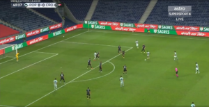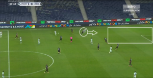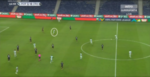 Quelques constantes caractérisent l’attitude des Lusitaniens lorsque la Croatie parvient à sortir de ce pressing. En premier lieu, le marquage des deux joueurs du double-pivot croate qui empêche les Vatreni d’assurer la première relance et de toucher facilement l’entrejeu.
