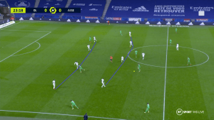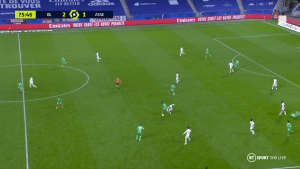 Saint-Étienne empêche notamment ses rivaux de trouver des solutions à l’intérieur du jeu. L’axe et les demi-espaces sont très souvent verrouillés, obligeant les Rhodaniens à aller chercher une solution sur les côtés.