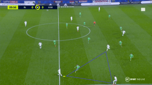 Même sans véritable pression adverse, les joueurs de l'ASSE sont parfois trop loin du porteur pour avancer par du jeu court.