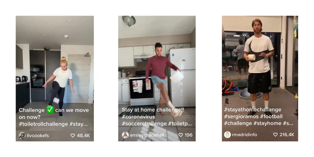 Ce sont bien eux, les supporters, qui ont sifflé le coup d’envoi sur les réseaux sociaux en organisant de nombreux challenges techniques, et notamment celui de jongler avec un rouleau de papier wc, devenu le premier bien de nécessité depuis le début du confinement. Quand deux sujets tendances se croisent, cela donne un potentiel viral infini, et pour preuve ce challenge a été réalisé par les fans de football du monde entier, puis par des internautes souhaitant simplement se prêter au jeu, et enfin par les joueurs professionnels, et parmi eux certaines des plus grandes stars comme Leo Messi, Sergio Ramos ou encore Angel Di Maria. Ces derniers sont pour la plupart très actifs sur les réseaux sociaux, et la participation à ce genre de challenges populaires ne peut qu’accroitre leur proximité avec leurs fervents supporters, et ainsi entretenir le lien social.