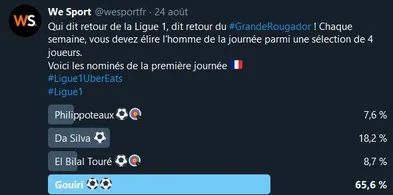 Qui dit retour de la Ligue 1 dit retour du Grande Rougador. Pour ce premier épisode, Da Silva, El Bilal Touré, Philippoteaux et Gouiri étaient nominés. C’est finalement le buteur de Nice qui a été choisi.