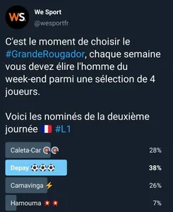 Bienvenue dans ce deuxième épisode du Grande Rougador. Pour cette 2ème journée de championnat, il y avait du beau monde. Ćaleta-Car, Camavinga, Hamouma et Memphis étaient nominés. C’est l’attaquant hollandais qui a été choisi par la communauté de We Sport. Retour sur son week-end en championnat !