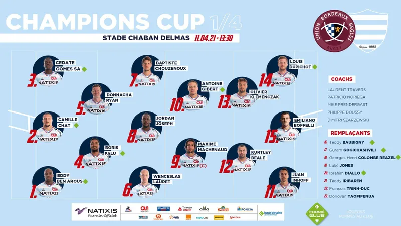 En pleine ascension, Matthieu Jalibert s’est peu à peu imposé comme une valeur sûre avec le XV de France. Le jeune ouvreur dispose désormais d’une nouvelle opportunité de valider sa progression sur la scène internationale. Novice à ce stade de la compétition, il portera la responsabilité de mener le jeu de l’UBB ce dimanche, une tâche qu’il a parfaitement assumée face à Bristol. En face, un autre international aura l’occasion de s’illustrer en la personne de Camille Chat. Frustré de son temps de jeu chez les Bleus, le talonneur a retrouvé avec appétit les couleurs du Racing en signant une prestation monstrueuse contre Edimbourg. Il devrait à nouveau faire parler sa puissance sur la pelouse de Chaban-Delmas.