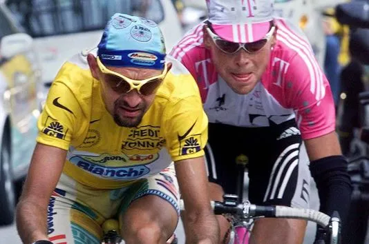 Comment parler de Vincenzo Nibali et ne pas penser directement au Pirate. A l’aube des années 2000, Marco Pantani fait frémir le cyclisme italien par ses performances. Son style si particulier, un coureur offensif au bandana et à la boucle d’oreille lui valent son surnom de Pirate. En 1998, pendant que la liesse s’empare de la France pour un autre événement sportif, Pantani se met à briller, déjà vainqueur du Giro quelques semaines plutôt, il s’impose sur la Grande Boucle réalisant un doublé Giro-Tour. Doublé que seulement 6 coureurs ont réussi dont parmi eux des noms comme Merckx, Hinault, Indurain ou encore Coppi. Malheureusement, comme bon nombre de coureurs de son époque, le dopage le rattrapera sur le Tour 1999. Cet épisode précipitera Pantani dans la cocaïne, et vers la fin de sa carrière et de sa vie, lui qui à 34 ans partira d’une probable overdose, même si son décès reste à ce jour source de controverses.