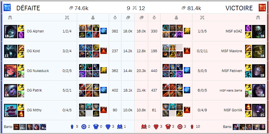 Misfits dispose d’une composition centrée ADCentrique avec un Ivern jungle et une Orianna à la mid lane pour protéger Hans Sama. Pour les lapins le plan est simple, donner de l'avance à Hans Sama sur Kai’Sa pour en faire une machine à snowball. De son côté Origen mise sur le scaling avec une Tristana et un Karthus, tout en ayant une excellente capacité de split push avec Yorick.