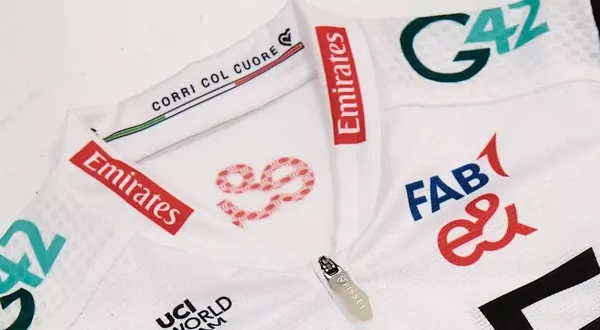 La première offre de Pissei ne fait pas de vagues, n’apportant que des changements subtils par rapport au design des deux dernières saisons. Le maillot est toujours blanc, avec les logos de UAE, Emirates, Whoosh, Colnago et Adnoc au milieu.