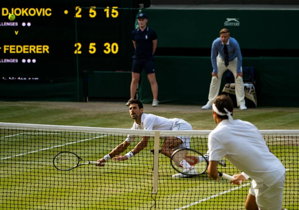 Et pourtant, après deux sets d’une très grande intensité, le cinquième restera pour toujours dans les annales de l’histoire du sport. Le niveau de jeu y est exceptionnel, rarement atteint, Novak Djokovic y est poussé dans ses retranchements et cède sur un passing de Roger à 7 jeux partout.