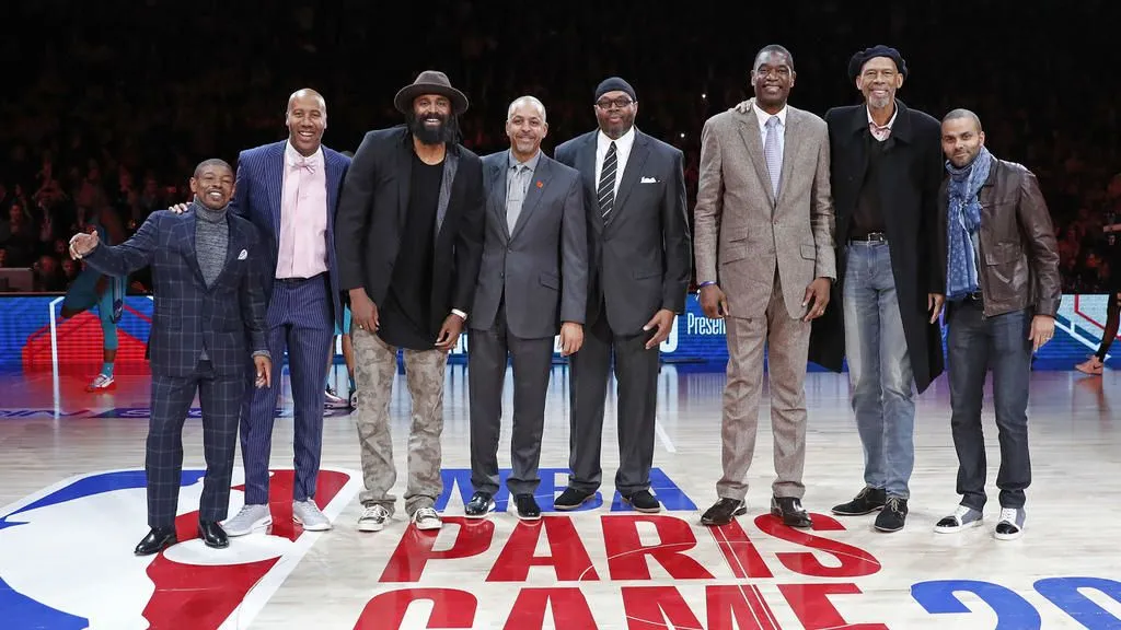 Côté célébrités internationales, il faut signaler que des grandes stars du basketball étaient à Paris pour l’occasion. Une belle photo de famille fut même réalisée, sur laquelle nous pouvons apercevoir de gauche à droite Muggsy Bogues, Bruce Bowen, Ronny Turiaf, Dell Curry, Sam Perkins, Dikembe Mutombo, Kareem Abdul-Jabbar et Tony Parker, grandement ovationné avant le début du match.