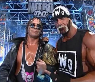 Bret Hart débute à Nitro le 15 décembre 1997, dû à la clause de non-compétitivité de 60 jours imposée par la WWF il ne pourra pas lutter à Starrcade 1997 mais il y sera l’arbitre du match qui oppasa Larry Zbyszko à Eric Bischoff. Plus tard dans la soirée, il interviendra dans le main-event de Hollywod Hogan contre Sting en remplaçant l’arbitre sonné au sol, lorsque Sting appliqua le Scorpion Deathlock sur Hogan, il fit sonner la cloche alors qu’Hogan n’avait pas tapé au sol, vengeance personnelle du Hitman ? Hum hum.