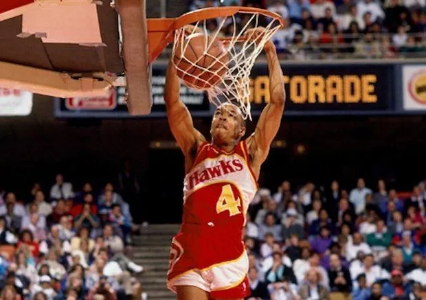 1m70. Voici la taille de Spud Webb, ancien joueur d’Atlanta. Avec 10 points et 5 passes de moyenne en 11 années de carrière, il est loin d’avoir été le plus prolifique de ces joueurs sur-athlétiques, mais a tout de même fait une carrière très sérieuse pour un joueur de son gabarit. Mais ce qui fait la légende de Spud, c’est d’avoir remporté le concours de dunks de 1986, devant notamment son coéquipier Dominique Wilkins, l’un des meilleurs ailiers et dunkers de l’histoire.