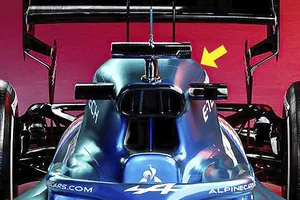 L’évolution la plus visible de la monoplace Alpine (précédemment Renault F1) est sans aucun doute l’énorme capot moteur qui va à l’encontre de la tendance générale à amincir cet organe un maximum. Alpine a pris le pari d’avoir un centre de gravité plus haut en échange d’un meilleur refroidissement du bloc moteur. Au niveau aérodynamique, Alpine garde la philosophie globale avec un nez fin et un peu d’outwash au niveau de l’aileron avant, mais pas autant que Ferrari !