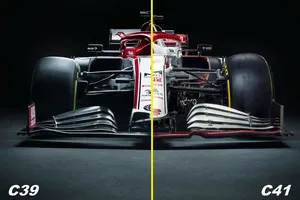 Alfa Romeo a voulu gagner le plus d’appui possible, c’est pourquoi l’écurie a changé les écopes de freins, le diffuseur mais surtout un package aéro avant complètement différent. Un nez fin nous laisse admirer une cape énorme. L’aileron avant est nettement plus imposant que la saison dernière contrairement à l’aileron arrière qui est plus petit, ce qui montre peut-être que la monoplace a gagné en stabilité de l’arrière.