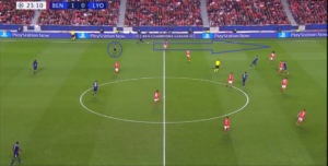 Mais si l’OL a eu énormément de mal à occuper correctement l’axe du terrain en phase défensive, le problème fut semblable en possession du ballon.