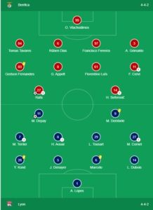 Sans le ballon, l’organisation de l’OL a également été meilleure en seconde période. Nettement plus dynamiques, appliqués au marquage et agressifs sur le porteur de balle, les Lyonnais étaient organisés en 4-2-3-1 lors des possessions benfiquistas, Aouar occupant alors pleinement son couloir gauche.