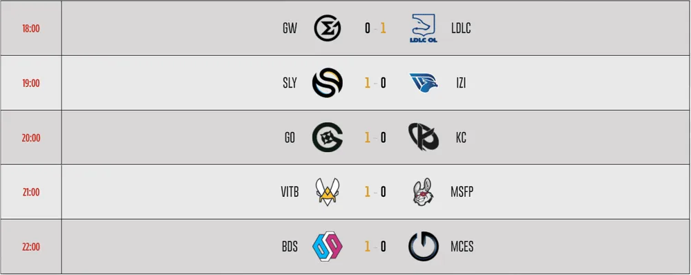 Dans un match marqué par les erreurs des deux équipes, BDS a tiré son épingle du jeu pour finalement s’imposer face à MCES après 37 minutes de jeu. Après un early game très convaincant, l’équipe de Dinep s’est trouée à la 12e minute, concédant 4 kills et permettant à MCES de revenir dans la partie. Le mid et late game ont été une succession de teamfights parfois forcés entre les deux équipes. BDS a dominé la plupart d’entre eux, notamment grâce à Xico sur sa Orianna. Malgré un Nashor volé par Boukada à la 23e minute, l’équipe basée en Suisse ne s’est pas démoralisée et est toujours allée de l’avant. L’obtention de l’âme des montagnes lui a permis de faire la différence en late game. Après avoir mis beaucoup de pression sur la base adverse, BDS a trouvé la solution à la 37e minute avec un teamfight à sens unique.