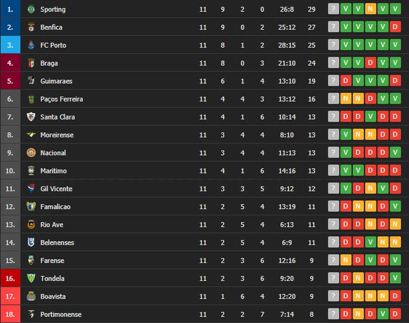 Il aura fallu attendre 19 ans pour revoir le Sporting passer à la nouvelle année en étant leader du championnat. La dernière fois que c’est arrivé, le Sporting avait été champion. Suivent l’autre Sporting, celui de Braga, ainsi que Benfica et le FC Porto, qui se sont aussi tous imposés. Les trois principaux poursuivants des Lions ne lâchent pas de lest et restent au contact des hommes de Rúben Amorim.