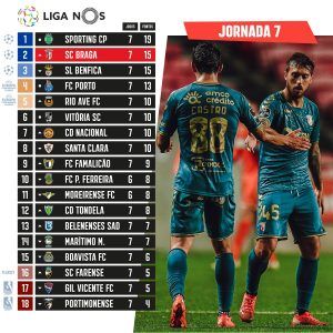 Le Sporting continue à faire son petit bonhomme de chemin, les hommes de Ruben Amorim se sont largement imposés sur la pelouse du Vitoria Guimaraes (4-0), ce qui permet aux Lions de compter 4 points d'avance sur ses principaux poursuivants, Braga et Benfica. Les Aigles, quant à eux, ont manqué l'occasion de rester collés à la locomotive de tête en s'inclinant sur sa pelouse sur le score de 3-2 face aux hommes de Carlos Carvalhal. Derrière, Porto se rassure, après un début de match compliqué et une ouverture du score concédée en début de match, les hommes de Sergio Conceição ont su se reprendre pour s'imposer 3-1 face à la lanterne rouge. Résumé de cette 7e journée du championnat portugais.