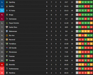 C'est l'une des sensations de cette neuvième journée du championnat portugais. Le leader du championnat (toujours invaincu) a été tenu en échec par Famalicao, ce qui permet aux rivaux des Lions de recoller au niveau du classement. Tout avait pourtant bien commencé pour le Sporting. Malgré un pénalty raté de Nuno Santos (22′), les Lions réussissent à ouvrir le score grâce à leur meilleur buteur Pedro Gonçalves (37′). Le capitaine de Famalicao, Gustavo Assunçao égalise assez rapidement (43′), avant que le latéral prêté par Manchester City, Pedro Porro, permette au Sporting de mener 2-1 d'un magnifique coup-franc dans les arrêts de jeu de la première période. Le maître à jouer du Sporting, auteur du premier but, est expulsé face à son ancienne équipe à la 80e minute de jeu. Famalicao réussira à égaliser en toute fin de match par l'intermédiaire de Jhonata Robert (89′). Score final 2-2.