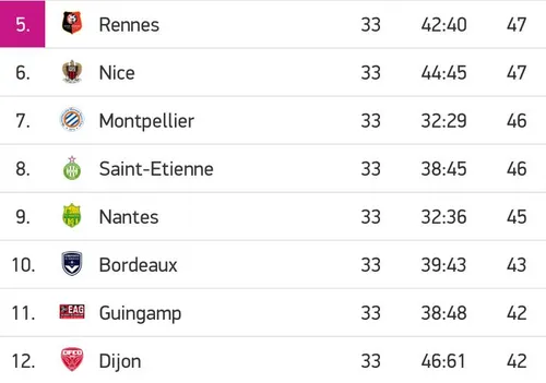 Au classement, seuls 5 points séparent le cinquième Rennais et le douzième dijonnais. Tout est donc encore jouable pour huit équipes !
