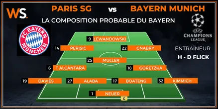 Face à l’habituel 4-3-3 mis en place par Thomas Tuchel, l’entraîneur bavarois devrait se satisfaire d’un 4-2-3-1 déjà choisi pour affronter le FC Barcelone, une équipe aux caractéristiques proche de celles du club de la capitale. Avec un duo précieux à la récupération, Goretzka – Alcantara, le système des joueurs de Münich est bien connu par les parisiens.