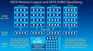 Les quatre premiers de la Ligue A, les quatre premiers de la Ligue B, les quatre premiers de la Ligue C et les quatre premiers de la Ligue D : 16 pays participeront donc à la phase de barrages de la Ligue des Nations qui se déroulera du 26 au 31 mars 2020.