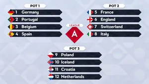 Vu son coefficient à l’indice UEFA, la France a été placée dans la Ligue A. Pour le tirage au sort, elle figure dans le pot 2, en compagnie de l’Angleterre, de la Suisse et de l’Italie (qu’elle évitera donc). Dans le pot 1, ses adversaires potentiels sont l’Allemagne, le Portugal, la Belgique et l’Espagne. Dans le pot 3, on retrouve la Pologne, l’Islande, la Croatie et les Pays-Bas.