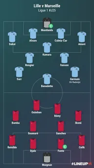 Pour la réception de Marseille, Lille va jouer avec 4 joueurs à vocation offensive. Bamba et Ikoné vont soutenir Rémy et Osimhen en attaque. Le milieu de terrain sera composé de Renato Sanches et Soumaré. Concernant le secteur défensif, Djalo devrait prendre la place de Gabriel par rapport à la victoire à Angers.