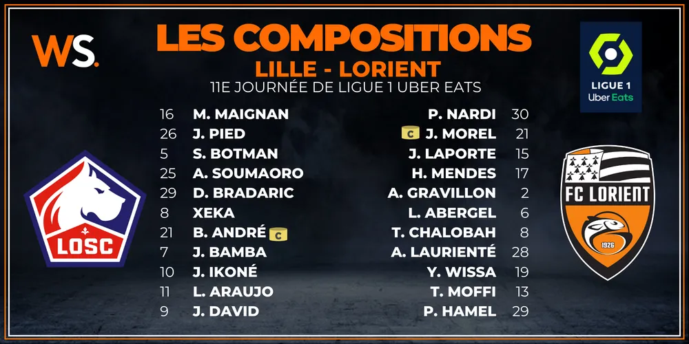Face à Brest, l’invincibilité Lilloise a prit fin. Avec deux nuls et une défaite lors des trois dernières journées, les Nordistes cherchent à s’imposer pour conforter une deuxième place chipée par Monaco. “J’ai constaté que dès que nous avons débuté l’Europa League, on a été moins performants en termes de résultats en Ligue 1”, a estimé Cristophe Galtier en conférence de presse. Enchainer les matchs, voilà tout le défi pour une équipe qui accueillera le Milan AC dans la semaine. Sur ce point, la trêve internationale est tombée à pique, mais le groupe du soir n’en est pas moins amoindri. Face à Lorient, les Lillois devront faire sans cinq joueurs de l’effectif. Alors que Renato Sanches et Zeki Çelik sont blessés, José Fonte, Burak Yilmaz et Reinildo sont eux suspendus.