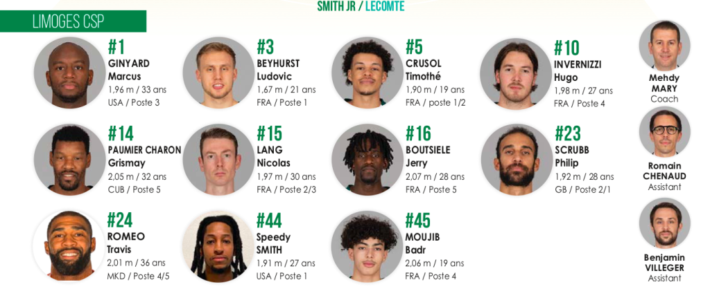 Au CSP, la bonne nouvelle s’oriente du côté du Canadien Scrubb. Gêné depuis le déplacement au Mans, il devrait tenir son rôle ce soir. Autre arme majeure, l’imposant Jerry Boutsiele. Tour de contrôle incontournable du CSP, le français est même le meilleur rebondeur depuis le début de ce championnat (7.9 reb/match). Mais les Palois devront tout autant avoir les yeux rivés sur Nicolas Lang. Gâchette reconnue, l’ailier converti un peu plus d’un 1 sur 2 de ses tirs à longue distance. Tout récemment arrivé en France, Speedy Smith porte quant à lui bien son nom. Celui qui avait offert le succès de prestige face à Bourg-en-Bresse au buzzer lors de son premier match, aura sans nul doute une nouvelle fois des fourmis dans les jambes pour faire valser la défense Paloise.