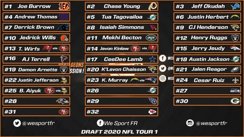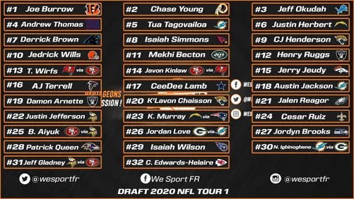 06:13 : Voici donc le tableau final du premier tour de la draft NFL 2020 !