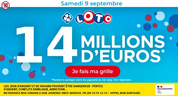 Gains du Loto du Samedi 9 septembre 2023 : un jackpot de 14 millions d’Euros
