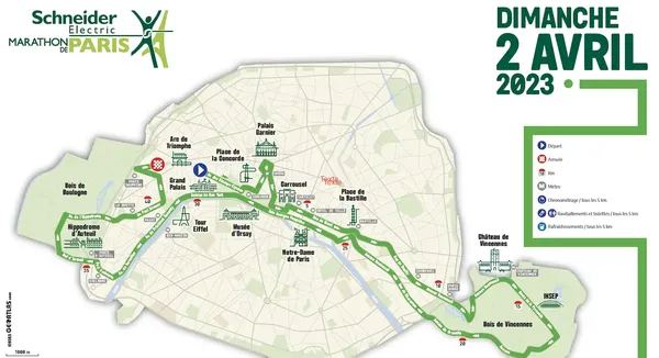 Le dénivelé total du Marathon de Paris est de 220 mètres. Le marathon de Paris est également appelé marathon Schneider Electric. Le coût de l’inscription en 2023 variait de 110 euros à 125 en fonction de la date d’inscription. Comme chaque année, l’ensemble des dossards ont trouvé preneurs.