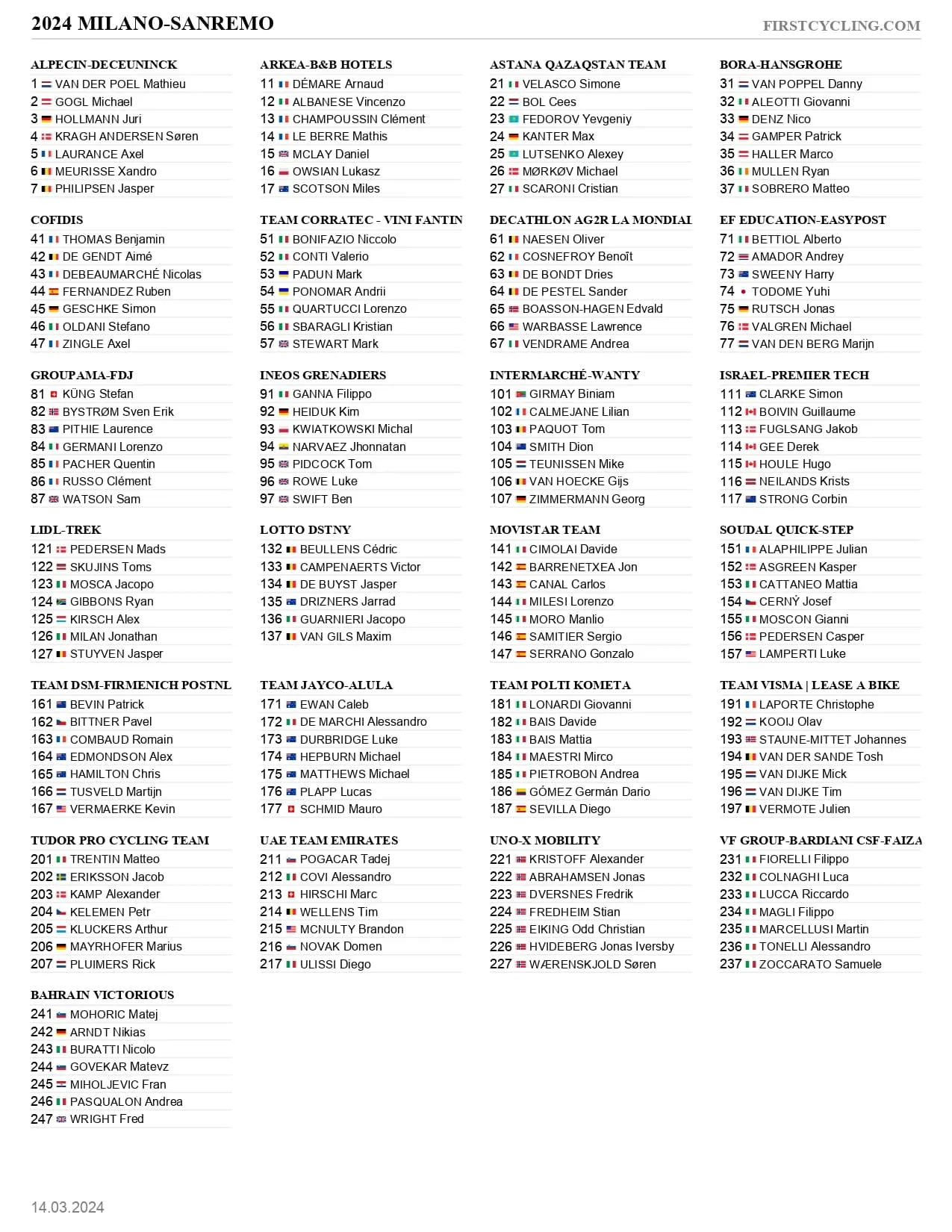 — Milano Sanremo (@Milano_Sanremo) March 12, 2024