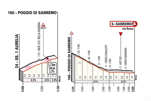 Dans une course où, franchement, il ne se passe pas grand-chose pendant des heures, le Poggio est le moment incontournable de la journée, son importance pour l’issue de Milan-San Remo étant supérieure à celle de moments décisifs similaires dans d’autres courses. Le Poggio est d’autant plus important qu’il ne s’agit, après tout, que d’un court tronçon de route – 3,7 kilomètres au total – dans la plus longue course d’un jour du calendrier. La bataille pour la position avant le virage à droite du Corso Giuseppe Mazzini et le rythme effréné de la montée en témoignent.