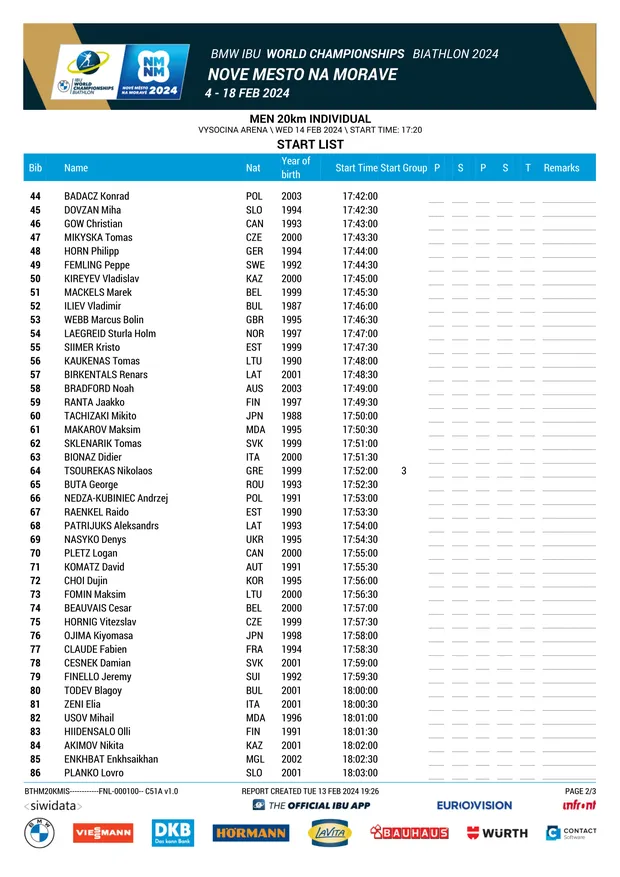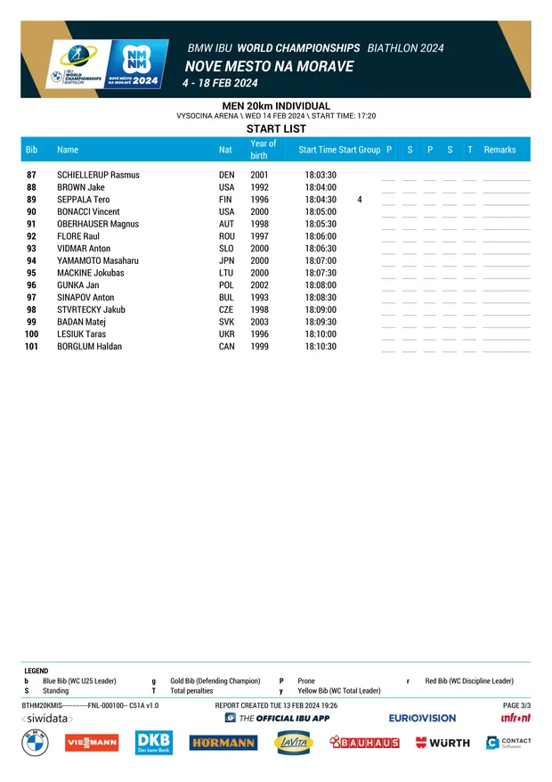 LA LISTE DE DÉPART DE L’individuel HOMMES DES CHAMPIONNATS DU MONDE BIATHLON 2024