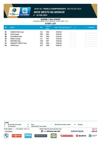 Ce vendredi à partir de 17 h 20 aura lieu le sprint femme des Mondiaux de biathlons 2024 du côté de Nove Mesto. Découvrez la start list.