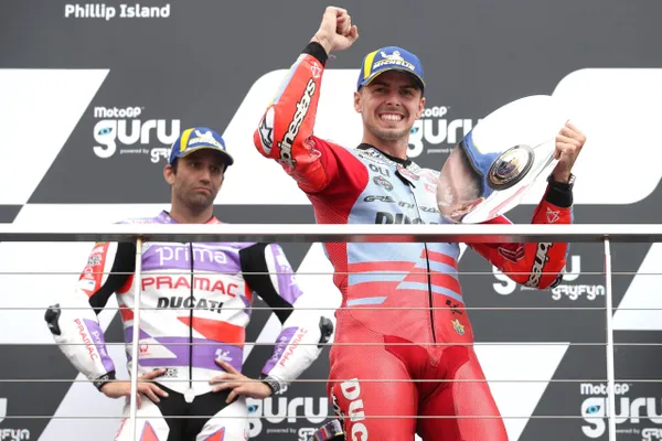 Depuis l’annonce de l’arrivée de Marc Marquez chez Gresini Racing, Fabio Di Giannantonio montre ce qu’il vaut réellement. Sans guidon pour 2024, le Romain n’a plus le choix et doit éblouir le HRC pour espérer que les Nippons lui fassent confiance. Quatrième en Indonésie, le pilote Ducati est monté sur son premier podium à l’occasion du Grand Prix d’Australie. Face au champion du monde Francesco Bagnaia (Ducati Lenovo Team), à un prétendant pour le titre Jorge Martin (Prima Pramac Racing), une KTM officielle celle de Brad Binder (Red Bull KTM Factory Racing) et à un pilote d’expérience, désormais vainqueur de GP, Johann Zarco (Prima Pramac Racing), Di Gia s’est battu comme un diable pour décrocher ce top-3.