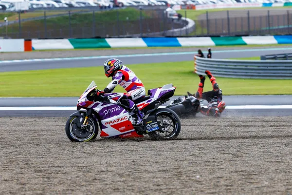 Johann Zarco quitte le Japon avec beaucoup de déception. Le Tricolore n’a inscrit aucun point après une chute dans le douzième tour de course. Le drapeau rouge, arrivé quelques instants plus tard, ne lui a pas permis de réintégrer le classement puisque le pilote Prima Pramac Racing n’est pas revenu au box de la manière imposée par le règlement.