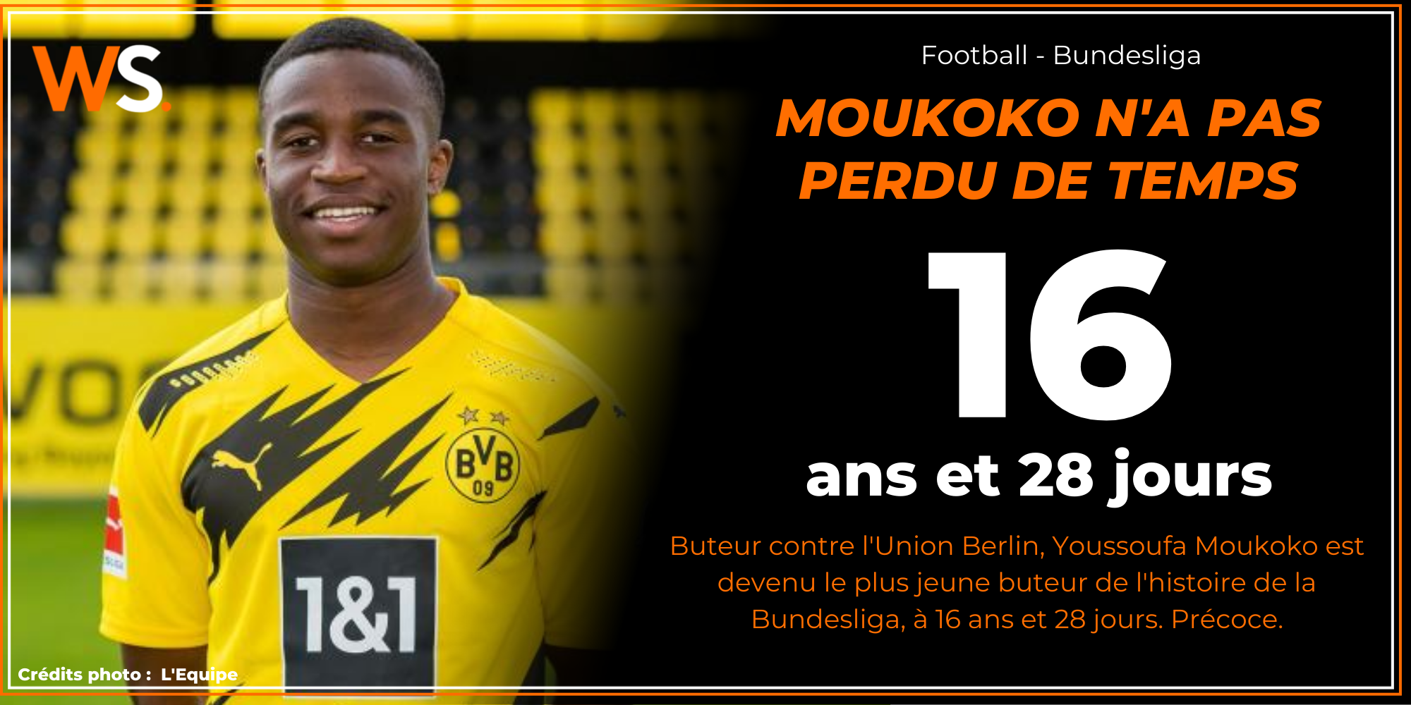 Dans le match d’ouverture de cette 13è journée de Bundesliga, les hommes en jaune du Borussia Dortmund se déplaçaient à Berlin pour y affronter l’Union, qui a des prétentions dans ce championnat d’Allemagne. Après leur défaite la semaine dernière, les hommes du BVB s’inclinent une nouvelle fois, 2-1, malgré un but inscrit par le (très) jeune Youssoufa Moukoko, devenant le plus jeune joueur à marquer en Bundesliga.