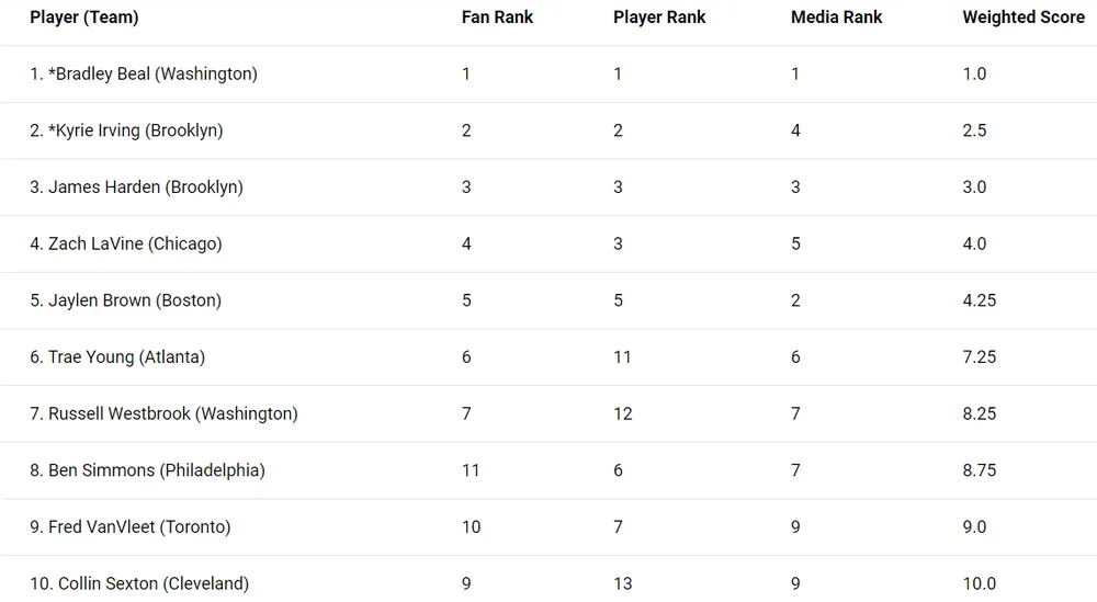 - Bradley Beal (SG, Washington Wizards ; x3)