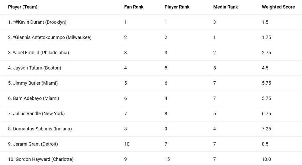 Plus plébiscité par les fans et les joueurs que son coéquipier James Harden, Kyrie Irving s’invite ainsi dans le Cinq Majeur All-Star à l’Est, obtenant une étoile avec une troisième franchise différente. Il sera accompagné chez les guards par Bradley Beal, qui devient titulaire pour la première fois de sa carrière après avoir été snobbé l’an dernier. Dans le frontcourt, Kevin Durant retrouve le All-Star Game pour son retour sur les parquets et sera notamment accompagné par Giannis Antetokounmpo à qui il chipe le statut de capitaine. Joël Embiid complète le quintet en devenant All-Star pour la quatrième fois consécutive, une série inédite pour un Sixer depuis un certain Allen Iverson.